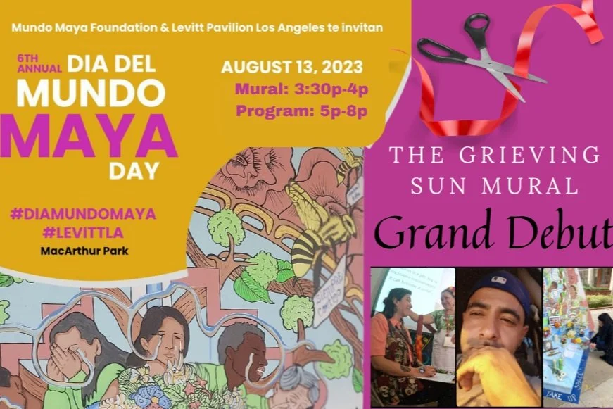 Our very own 2023 Activist-in-Residence Marlené Nancy Lopez, public artist, will be debuting the Grieving Sun Mural at the Levitt Pavilion in MacArthur Park on Sunday, Aug 13, 3:30 - 4 pm, with indigenous-infused concert and programming at 5-8 pm during this year’s Mundo Maya Day. Please join this special event to dedicate this mural to the community and the debut of this public grieving space.